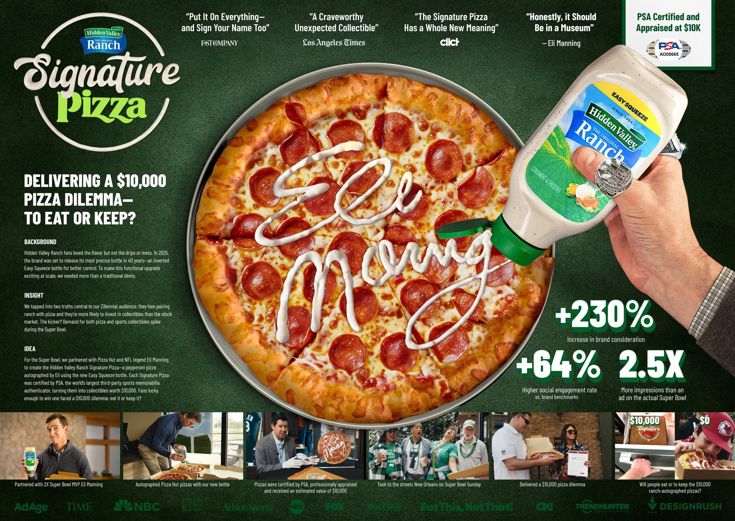 To launch Hidden Valley Ranch’s new, more precise Easy Squeeze bottle, we partnered with NFL legend Eli Manning to deliver people a $10,000 pizza dilemma.